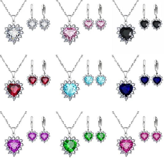 Exquisite Heart-shaped Necklace Earrings Jewelry Set for Women Charm Ladies Jewelry Fashion Bridal Accessory Set Romantic Gifts