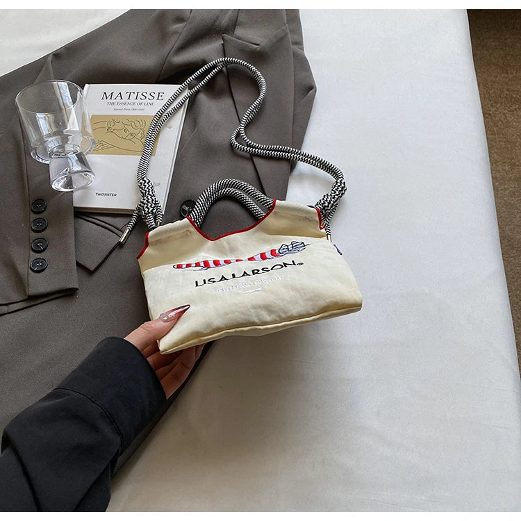 Embroidered canvas bag for women; light single shoulder bag for spring and summer; cross-body handbag.